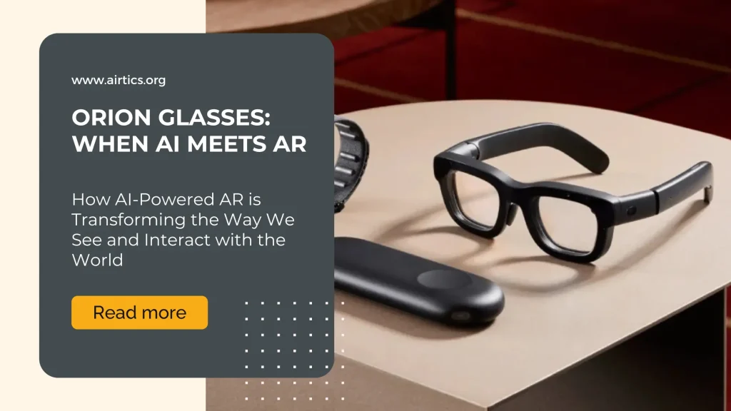 Orion glasses can be controlled with a neural wristband that translates electrical signals from finger movements into digital commands. This allows users to control the glasses using simple gestures, such as pinching fingers to interact with the UI. AI helps the wristband accurately interpret gestures, making the overall experience smooth.