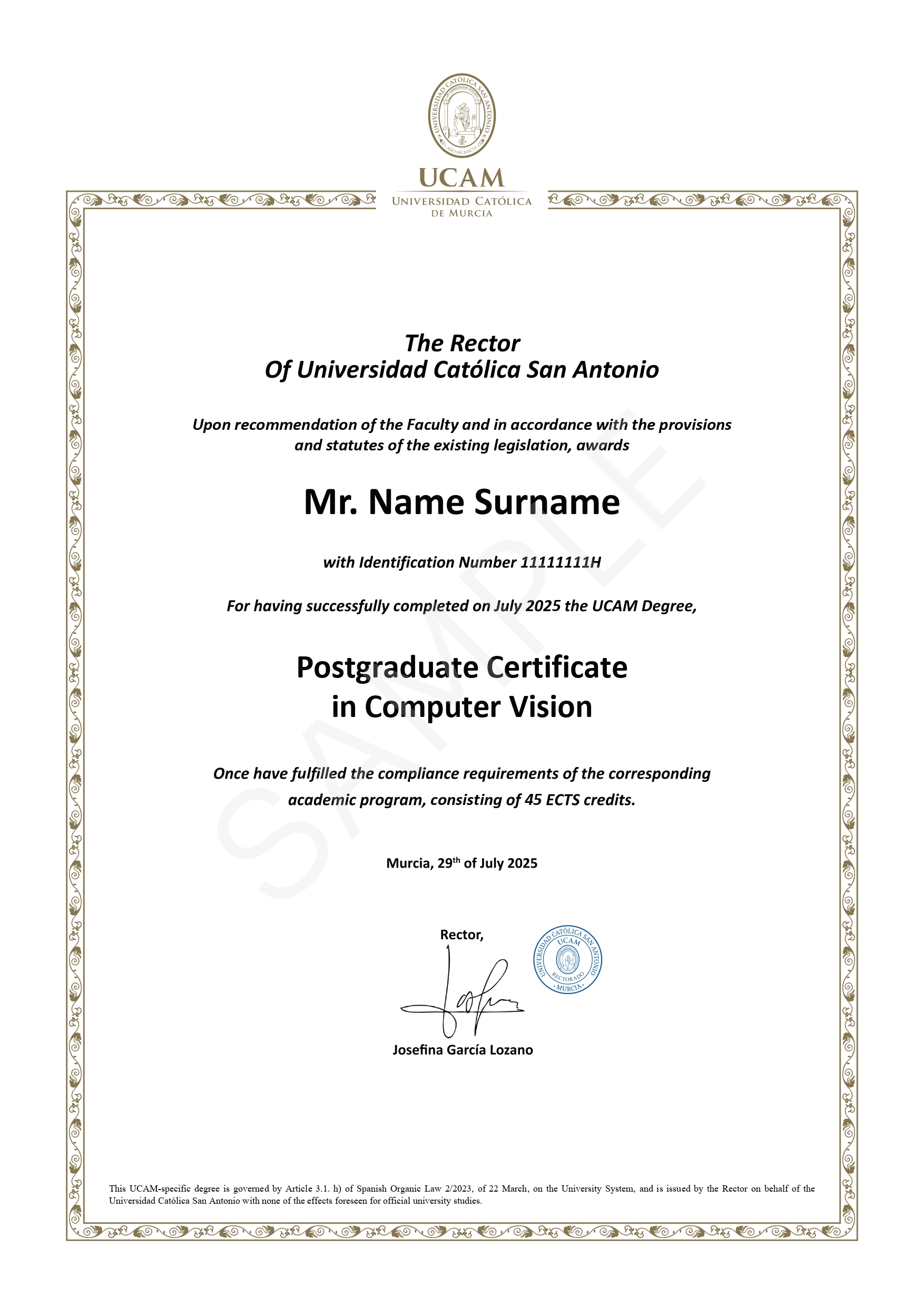 Master cutting-edge computer vision technologies with our comprehensive 9-month PG Diploma program, certified by UCAM University, Spain. This professional development program equips you with advanced skills in Python programming, machine learning, deep learning, and computer vision applications through 144 hours of live instructor-led training.