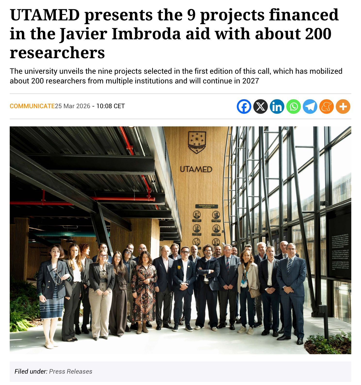 Building on this strong foundation, UTAMED has already announced a second edition planned for 2027, with investment set to be multiplied tenfold, cementing the programme as a cornerstone of the university’s long-term research and innovation strategy.